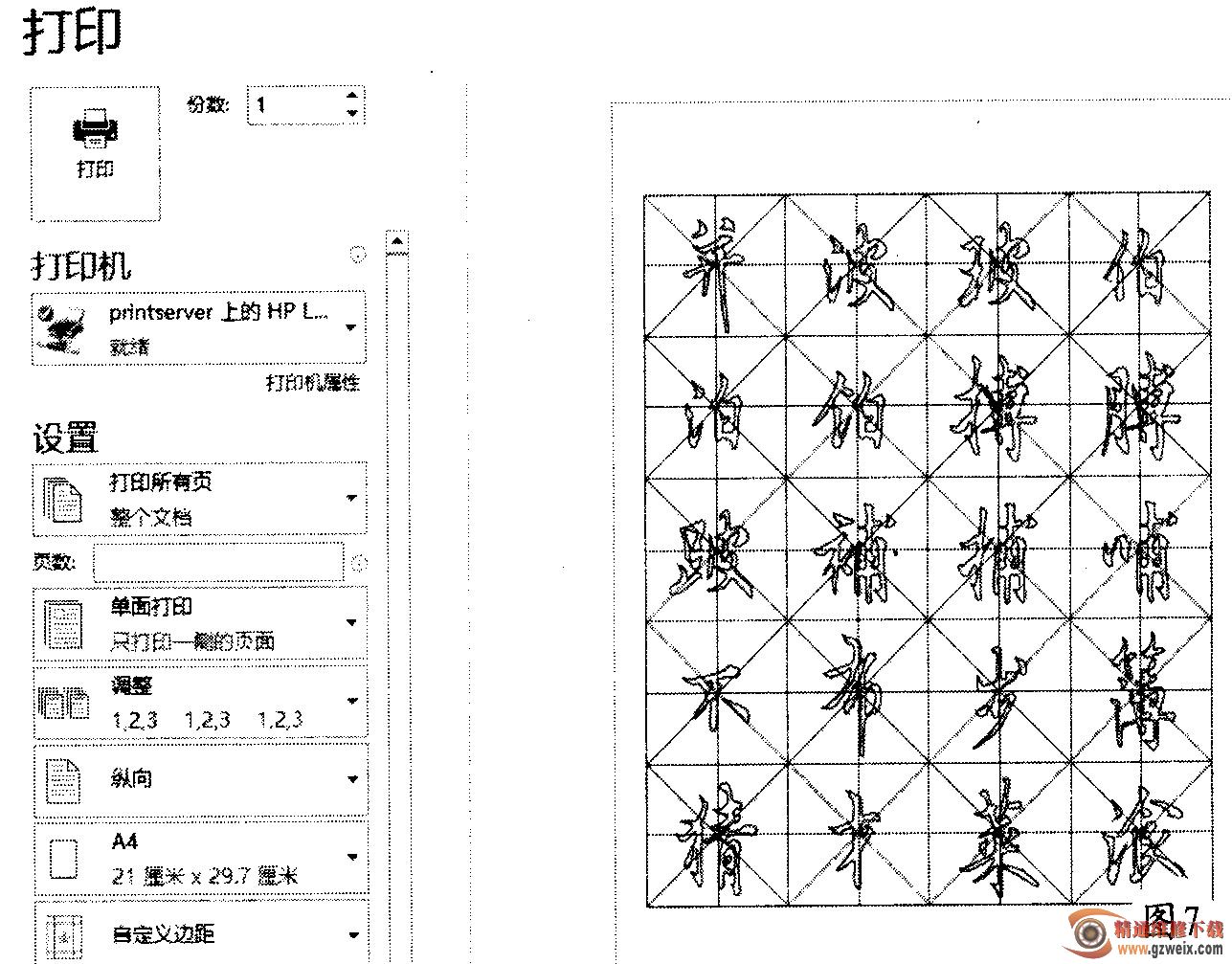 確認(rèn)不用修改了,就可以把字帖打印出來了(如圖7)。