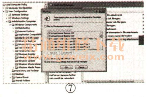 組策略編輯器提供了約3000個項目,通過它們可以輕松地對系統(tǒng)進(jìn)行調(diào)整,并且調(diào)整的方法非常簡單。例如,如果需要病毒掃描工具自動驗證每個郵件的附件,那么可以選擇“User Configuration I Administrative Templates l Windows Components l Attachment Manager”,在右側(cè)的窗口中雙擊打開“Notify antivirus programs when opening attachments”,在打開的對話框中選擇“Enabled”,并確定即可,如圖6所不。