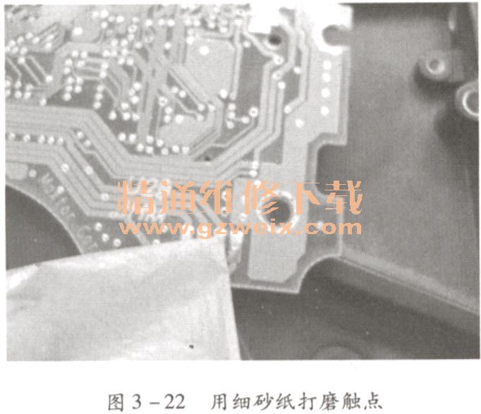 (1)主軸電機接線柱或觸點很容易因接觸不良產(chǎn)生異響,此時可用細砂紙打磨干凈后再裝好電路即可,如圖3-22所示。