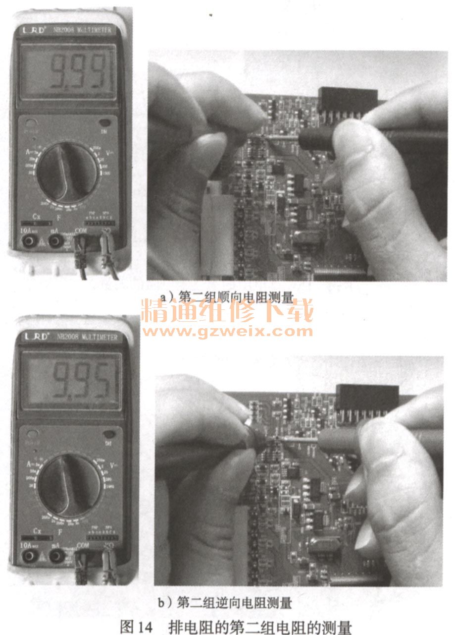 5.用上述方法對排電阻的第二組對稱的引腳進(jìn)行測量,如圖14所示。