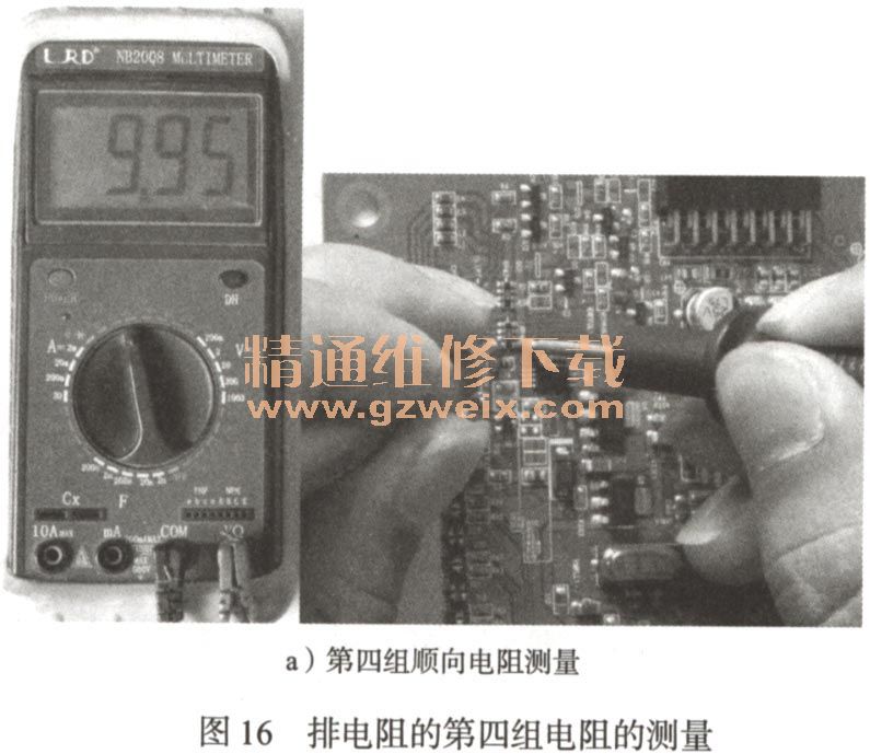 7.用上述方法對排電阻的第四組對稱的引腳進(jìn)行測量,如圖16所示。