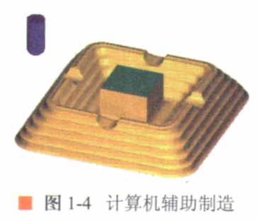 ★計(jì)算機(jī)輔助制造(CAM):利用計(jì)算機(jī)進(jìn)行生產(chǎn)設(shè)備的管理、控制與操作,從而提高產(chǎn)品質(zhì)量、降低生產(chǎn)成本。圖1-4所示為用計(jì)算機(jī)模擬機(jī)器零件的加工過程。
