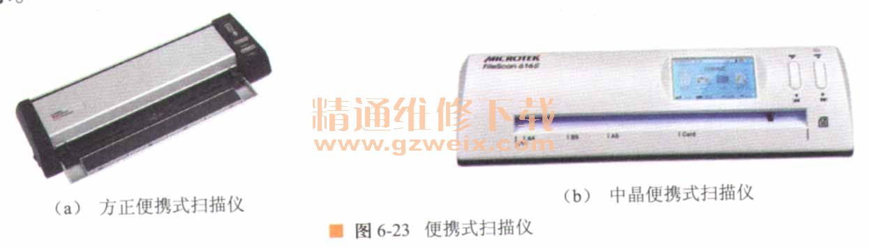 便攜式掃描儀具有體積小、重量輕、攜帶方便等優(yōu)點(diǎn),在商務(wù)領(lǐng)域中應(yīng)用較多,其外觀如圖6-23所示。