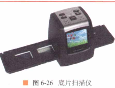 要點(diǎn)提示:底片掃描儀主要用于掃描各種透明膠片(底片),如圖6-26所示;條形碼是一種信息代碼,用特殊的圖形來(lái)表示數(shù)字、字母信息和某些符號(hào),條碼掃描儀實(shí)際上是種條形碼自動(dòng)識(shí)別系統(tǒng),用來(lái)識(shí)別條開碼,如圖6-27所示。