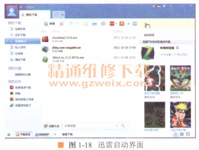 應(yīng)用軟件的范圍很廣,如辦公軟件Office、AutoCAD及游戲軟件等都是應(yīng)用軟件,是用戶工作、學(xué)習(xí)和生活中的好幫手。圖1-18所示為用于文件下載的迅雷軟件。