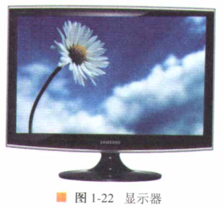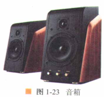輸出設(shè)備是將計(jì)算機(jī)的處理結(jié)果以適當(dāng)?shù)男问捷敵龅脑O(shè)備。顯示器是最重要的輸出設(shè)備,經(jīng)過計(jì)算機(jī)處理過的數(shù)據(jù)信息通過顯示器顯示出來,實(shí)現(xiàn)人機(jī)之間的交流。顯示器外觀如圖1-22所示。音箱作為一種主流的音頻輸出設(shè)備,是多媒體計(jì)算機(jī)的重要組成部分之一,其外觀如圖1-23所示。