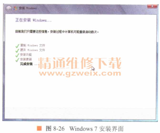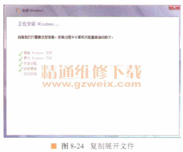 14.安裝更新后,計(jì)算機(jī)將會重啟,此時可以取出光盤,如圖8-24所示。