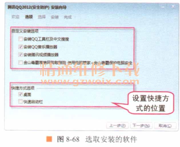 5.在打開的窗口中選取安裝的選項(xiàng)以及創(chuàng)建快捷圖標(biāo)的位置,然后單擊下一步(N)按鈕,如圖8-68所示。