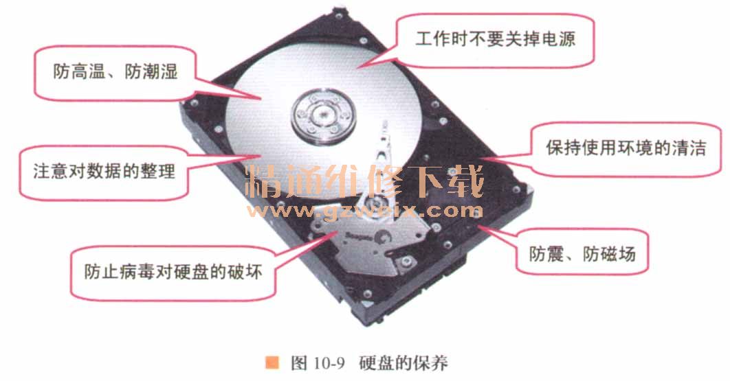 圖10-9給出了硬盤使用和保養(yǎng)時的注意事項。