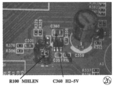 另外,在MS901機芯主板上,對MHL供電控制與圖24有些不一樣,具體電路如圖25所示,關(guān)鍵實測點如圖26所示。在主IC I/O口不起控的情況下,一直有5V電壓輸出,MHL VBUS EN默認(rèn)置低。只有MHL CD_SENSE有輸入置高并被主IC識別后,MHLes BUS EN才會置高,U301才會輸出5V到MHL VBUS。在使用中發(fā)現(xiàn),在外接HDMI時(接入H2_5V)時,HD-MI產(chǎn)生的漏電流會導(dǎo)致RT9711的EN端電壓異常,從而影響5V電壓的輸出,因此在后期部分產(chǎn)品中,U301改用RT9721,并去掉了上拉電阻R102,改為直接由I/O口控制(在采用V005版軟件的機型中,軟件對I/O口進(jìn)行控制)。