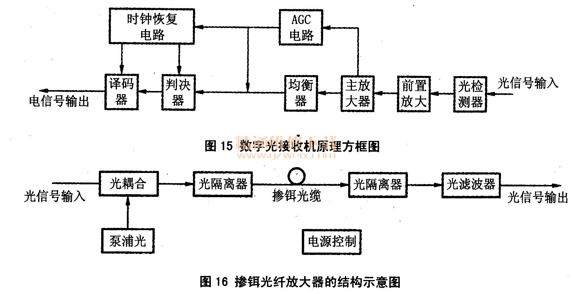 圖15為數(shù)字光接收機(jī)原理方框圖。經(jīng)光/電轉(zhuǎn)換、放大后,輸出的為數(shù)字信號(hào)。