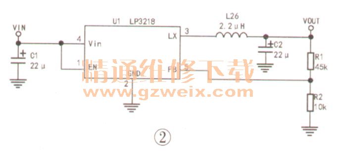 分析檢修:上電檢測,電源板輸出的4V、5V及22V三組電壓正常。但主板上3.3V供電僅1.86V。為快速查找故障原因,將維修電源調(diào)至3.3V,接到原機C89 (3.3V濾波電容)兩端,通電發(fā)現(xiàn)電流僅170mA,且機器可以正常開機,看來是以U1(絲印AS 11 DA,型號為LP3218)為核心的轉(zhuǎn)換電路有問題。
