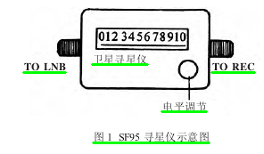 SF95 型尋星儀的使用方法是:尋星時將 SF95 尋星儀串接在接收機(jī)與高頻頭之間,同衛(wèi)星信號共用一根電纜,使用接收機(jī)提供給高頻頭的 13~18 V 電源。