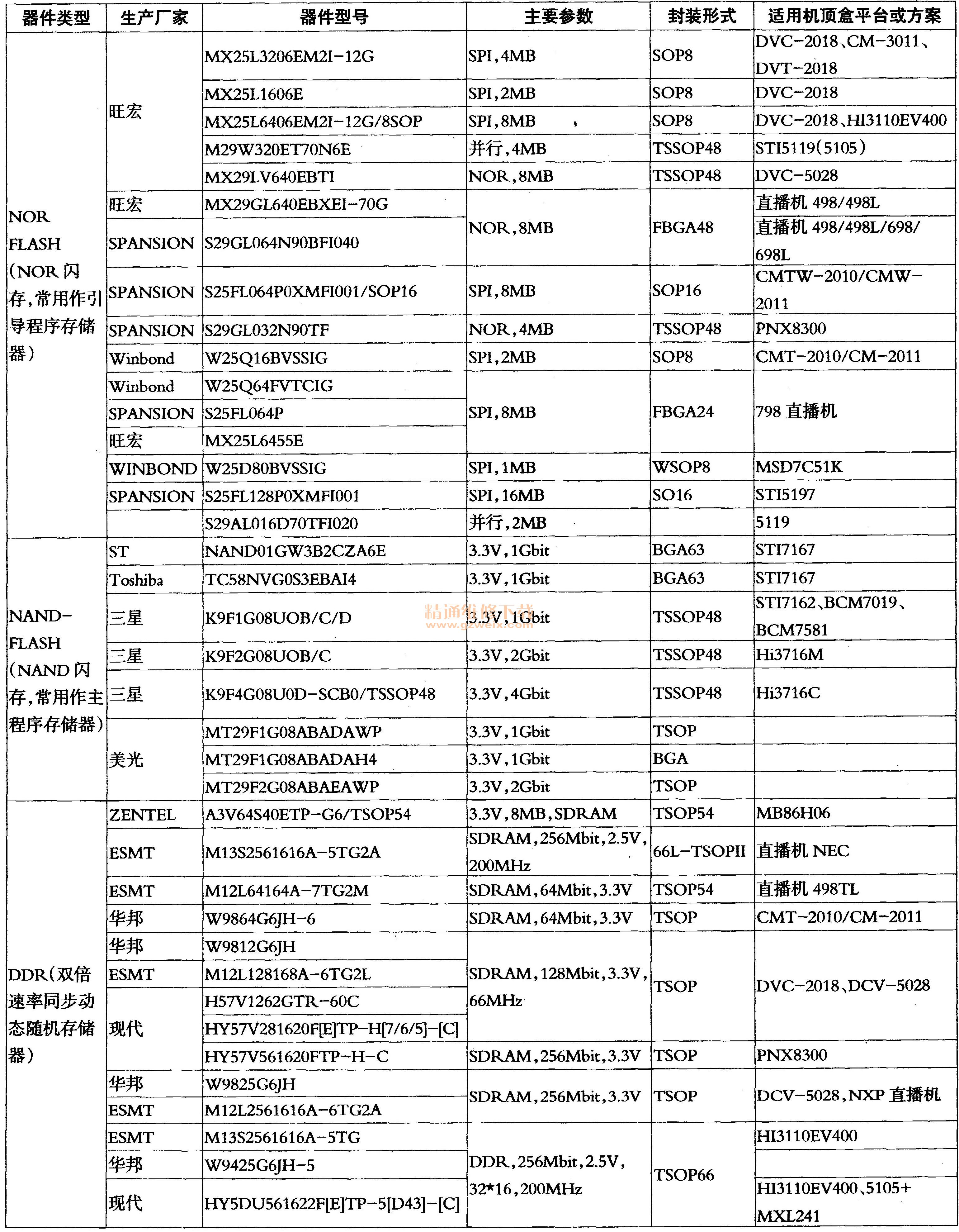 說明:1.器件型號、主要參數(shù)、封裝形式等參數(shù)同樣適用于其他數(shù)碼產(chǎn)品;2.存儲器的容量單位如下:1Byte(字節(jié))=8bit(位)91k8=1024Byte(字節(jié)),1MB=1024kB,1GB=1024MB,1TB=1024GB; 3.SPI是英文Serial Peripheral Interface的縮寫,中文意思是串行外圍設(shè)備接口。