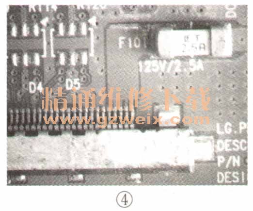 邏輯板的供電保險(xiǎn)管與上屏線接口中的供電端相連,標(biāo)注多為“Fxx”,外形象一只小型貼片電阻,如圖4所示。