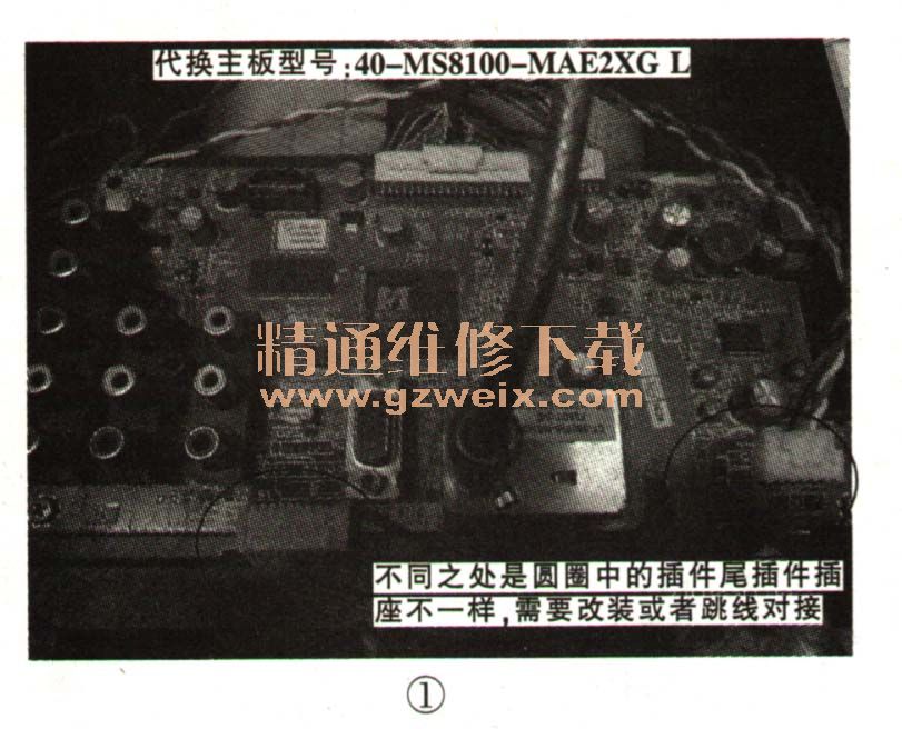 試著把40 -MS8100 -MAE2XG L主板換上后,原機(jī)LVDS線不夠長(zhǎng),需要把繞彎的屏線從塑料框架取出,直接從屏上部插入屏線長(zhǎng)度才夠。通電試機(jī),TCL的LOGO顯示出來(lái),加入TV信號(hào)后伴音正常,圖像顏色不對(duì),懷疑是屏參出錯(cuò)引起。