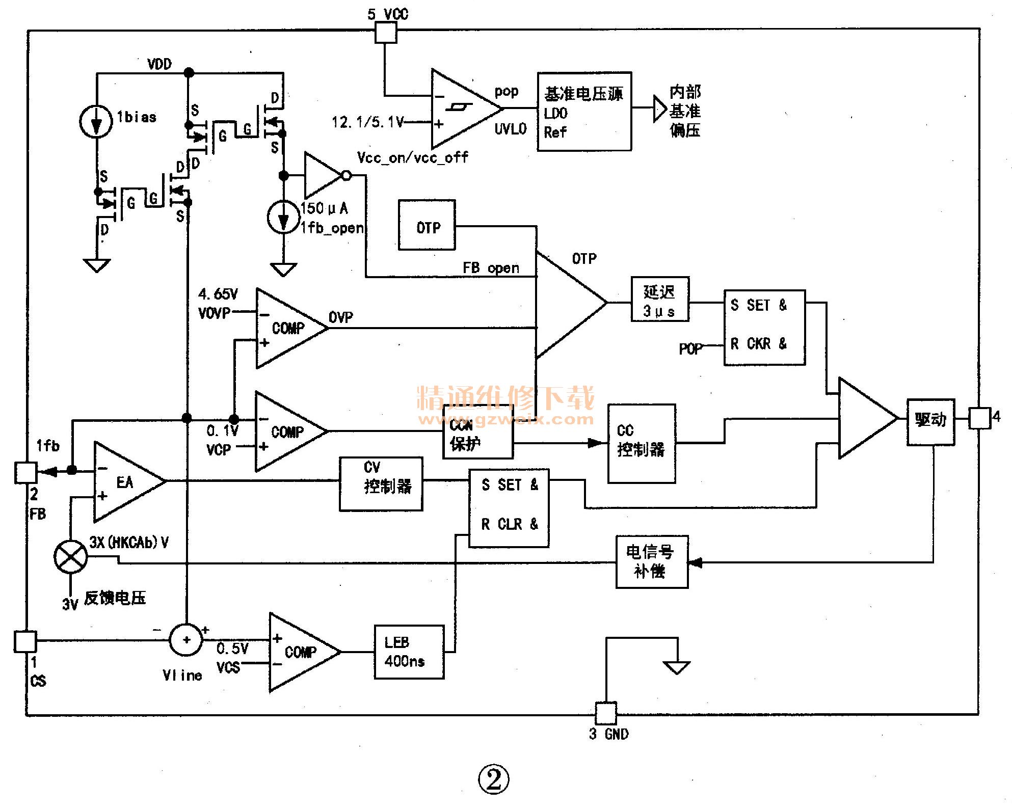①腳內(nèi)部,還設(shè)有一個400ns的前沿消隱器,以濾除CS端在導通瞬間的噪聲。ART3653A通過輔助繞組反饋來檢測次級的輸出電流,②腳FB端通過分壓電阻R3 、 R4直接接到輔助繞組上,檢測電壓送入內(nèi)部比較器。為排除噪聲的干擾,芯片內(nèi)部設(shè)置了3ps的前沿消隱時間。芯片的過壓、過流、過溫、反饋開路、短路保護和LED保護判斷和控制都是通過對輔助繞組電壓信號的檢測來實現(xiàn)的。