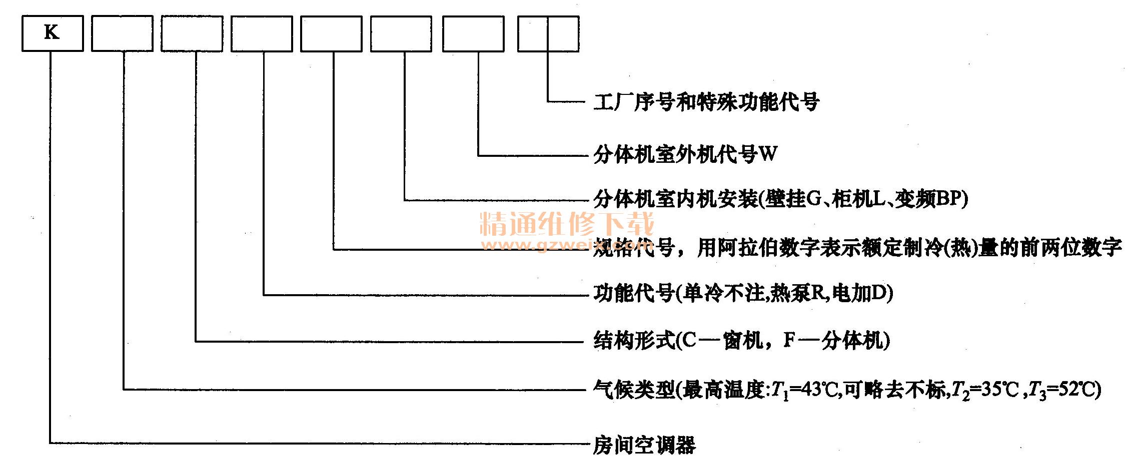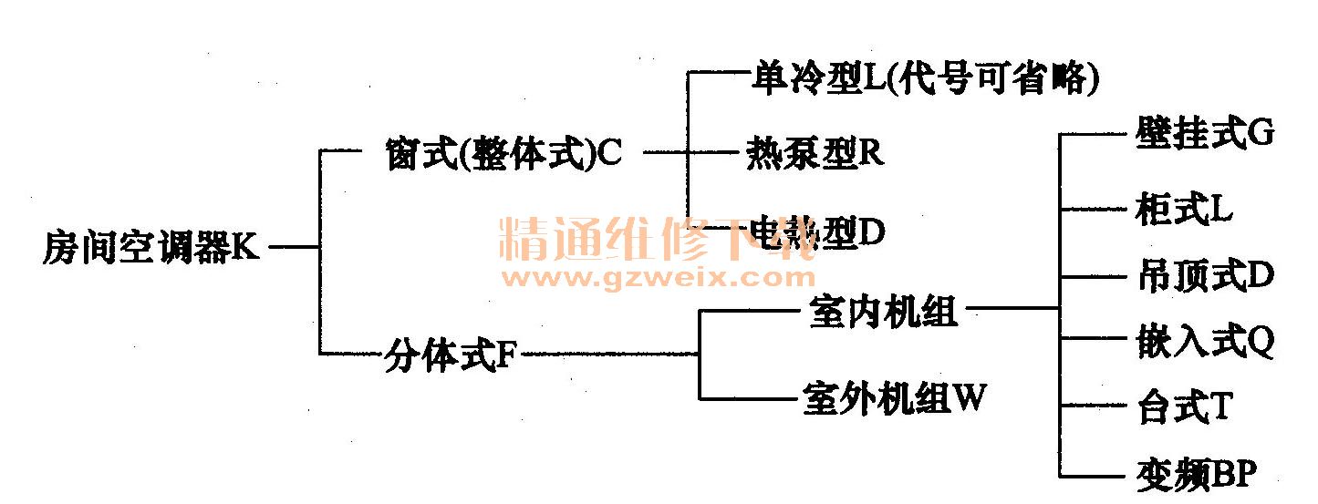 空調(diào)器型號命名方法如下: