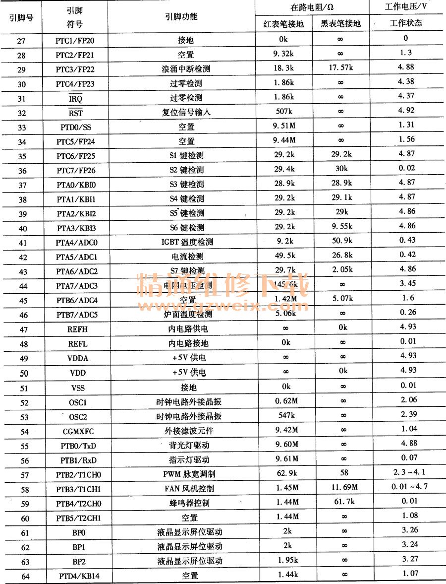 MC68HC908J12集成電路的引腳功能和維修數(shù)據(jù)如表24所示。