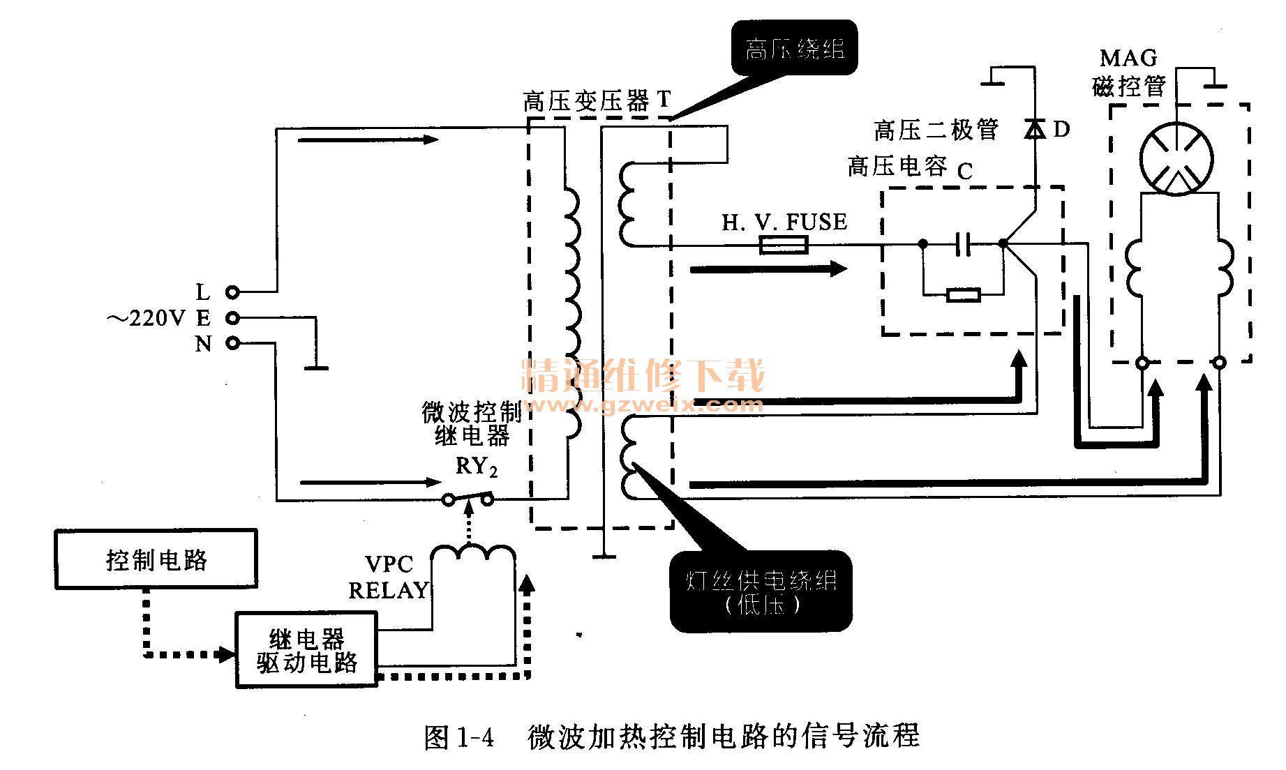 如圖1-4所示,為微波加熱控制電路的信號流程。