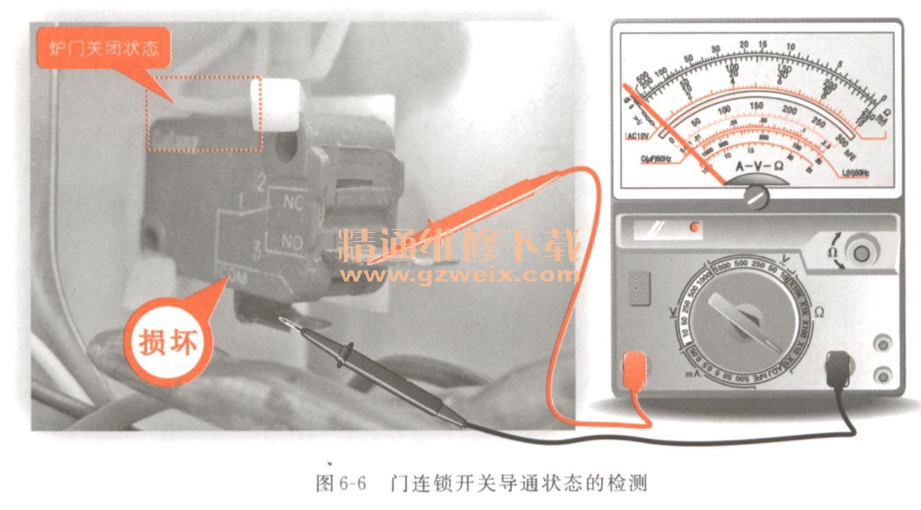 (4)經(jīng)檢測,在爐門打開和關(guān)閉狀態(tài)下時(shí),門連鎖開關(guān)的阻值均為二,則表明該門連鎖開關(guān)已損壞,需要對其進(jìn)行更換。