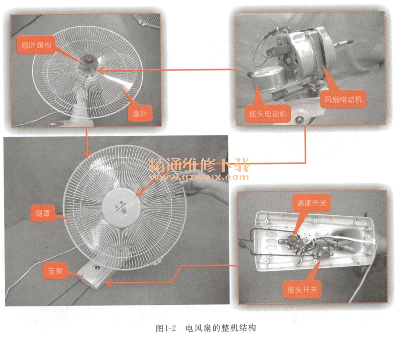 一、電風扇整機結(jié)構(gòu)及故障判別