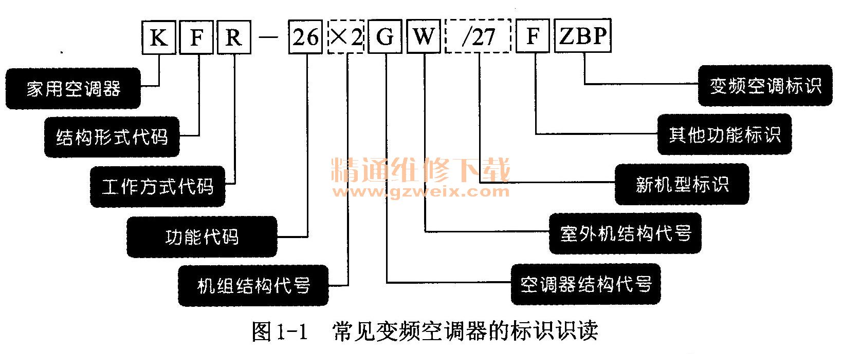 常見變頻空調(diào)器的標(biāo)識(shí),可參見表1-1所列。