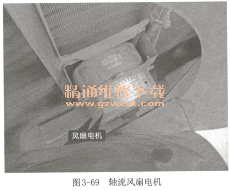 變頻空調(diào)器室外機風(fēng)扇組件主要是由軸流風(fēng)扇、風(fēng)扇電機等構(gòu)成的,如圖3-68示。