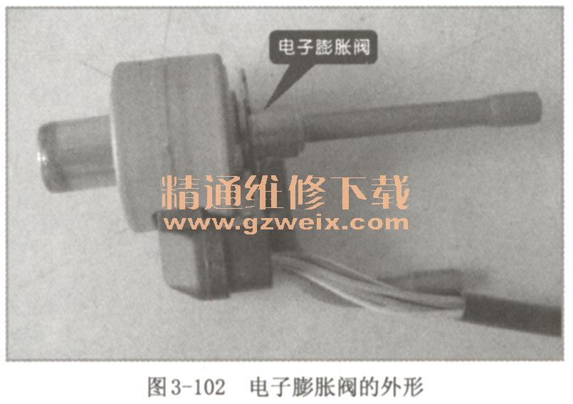 新型變頻空調(diào)器中,多使用電子膨脹閥代替毛細(xì)管作為節(jié)流裝置,并且電子膨脹閥還具有控制制冷劑流量的功能。如圖3-102所示為電子膨脹閥的外形。