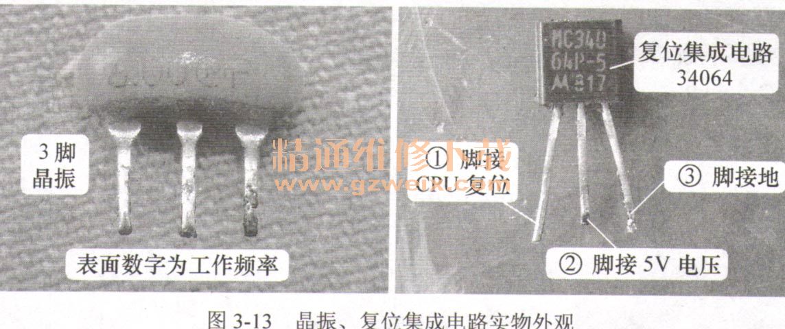 晶振、復(fù)位集成電路實物外觀如圖3-13所示。