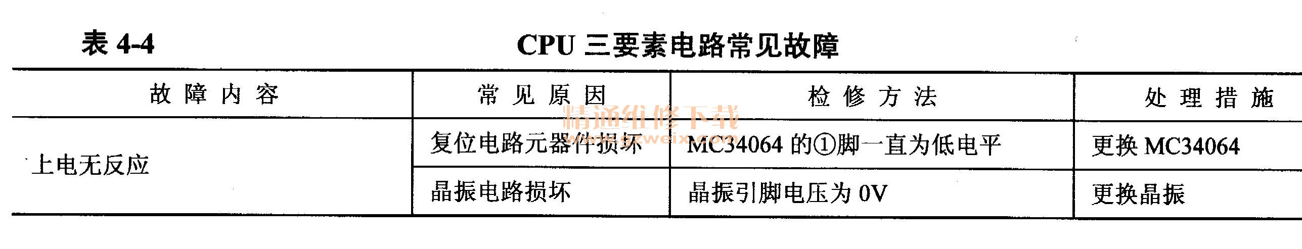 電源、復(fù)位、時鐘振蕩電路稱為CPU三要素電路,是CPU正常工作的前提,缺一不可,否則會死機(jī),引起空調(diào)器上電后室外機(jī)主板無反應(yīng)的故障。