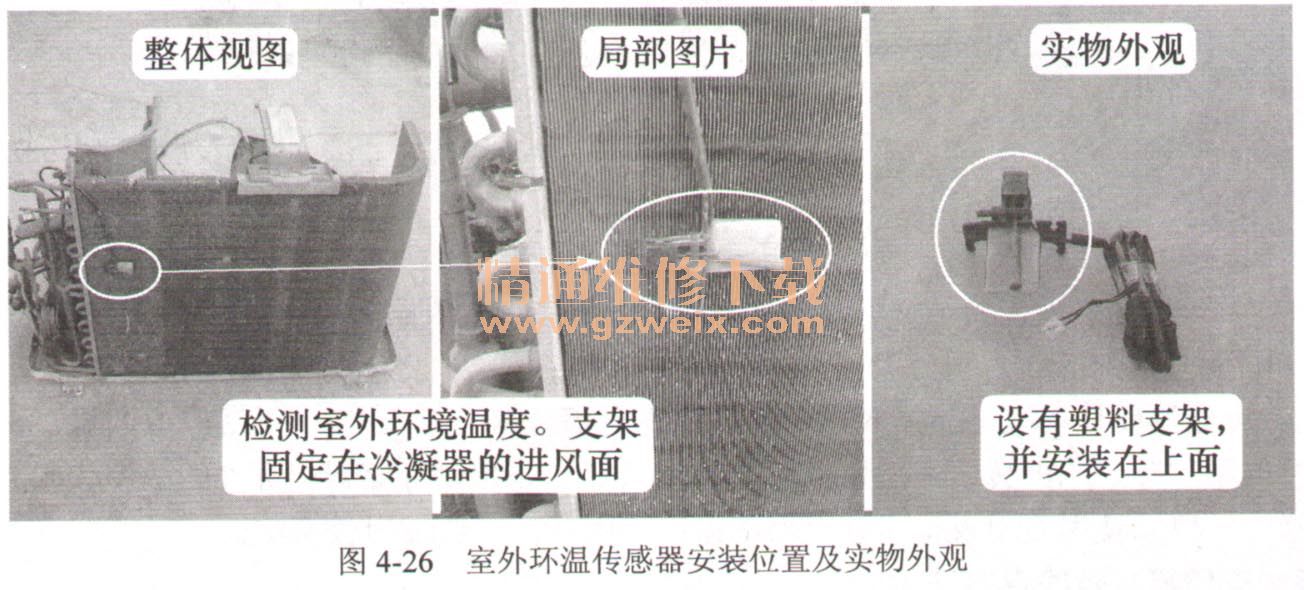 圖4-26所示為室外環(huán)溫傳感器安裝位置及實(shí)物外觀。