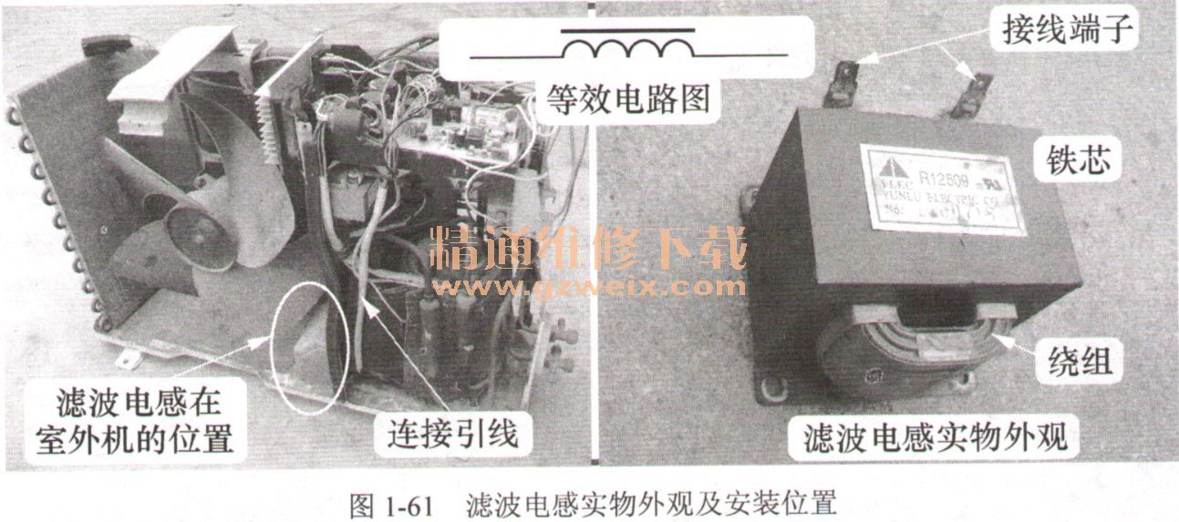 ②由于繞制濾波電感線圈的線徑較粗,很少有開路損壞的故障。而其工作時通過的電流較大,接線端子處容易產(chǎn)生熱量,將連接引線燒斷,出現(xiàn)室外機無供電的故障。