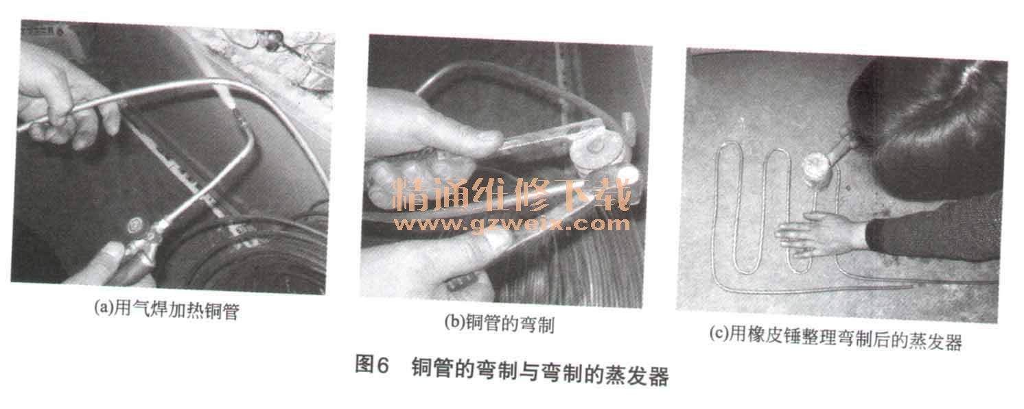 銅管的彎制,主要用于自制蒸發(fā)器。彎制方法和步驟如圖6所示。