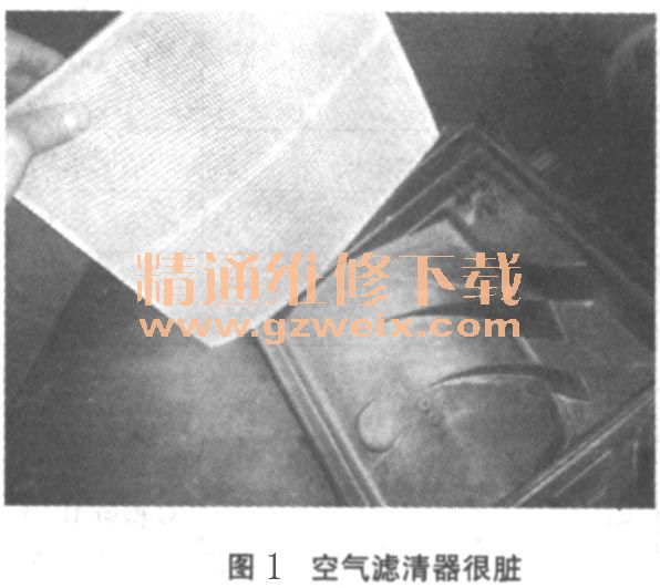 選擇相應(yīng)的測(cè)試模塊執(zhí)行檢測(cè)計(jì)劃,檢查DME和HFM(空氣流量計(jì))之間的電線束,線束、插頭連接良好。檢查節(jié)氣門后的進(jìn)氣系統(tǒng)是否有泄漏,節(jié)氣門后的進(jìn)氣系統(tǒng)密封很好,沒(méi)有發(fā)現(xiàn)有漏氣的地方。檢查油蓋的密封性,也沒(méi)有發(fā)現(xiàn)有問(wèn)題。檢查HFM人流裝置(空氣濾清器濾芯損壞或安裝錯(cuò)誤),發(fā)現(xiàn)空氣濾清器很臟,輕輕一磕就有很多灰塵落下,如圖1所示。