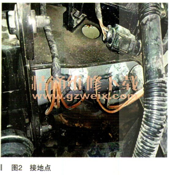 經(jīng)驗(yàn)得知最大可能性是雨刮器電機(jī)的640接地點(diǎn)如果接地不良,雨刮器會(huì)出現(xiàn)白動(dòng)刮的現(xiàn)象,這種案例并不少見(jiàn)。首先查找該接地點(diǎn),該車(chē)640接地點(diǎn)在左前縱梁上,左大燈后面,如圖2所示。