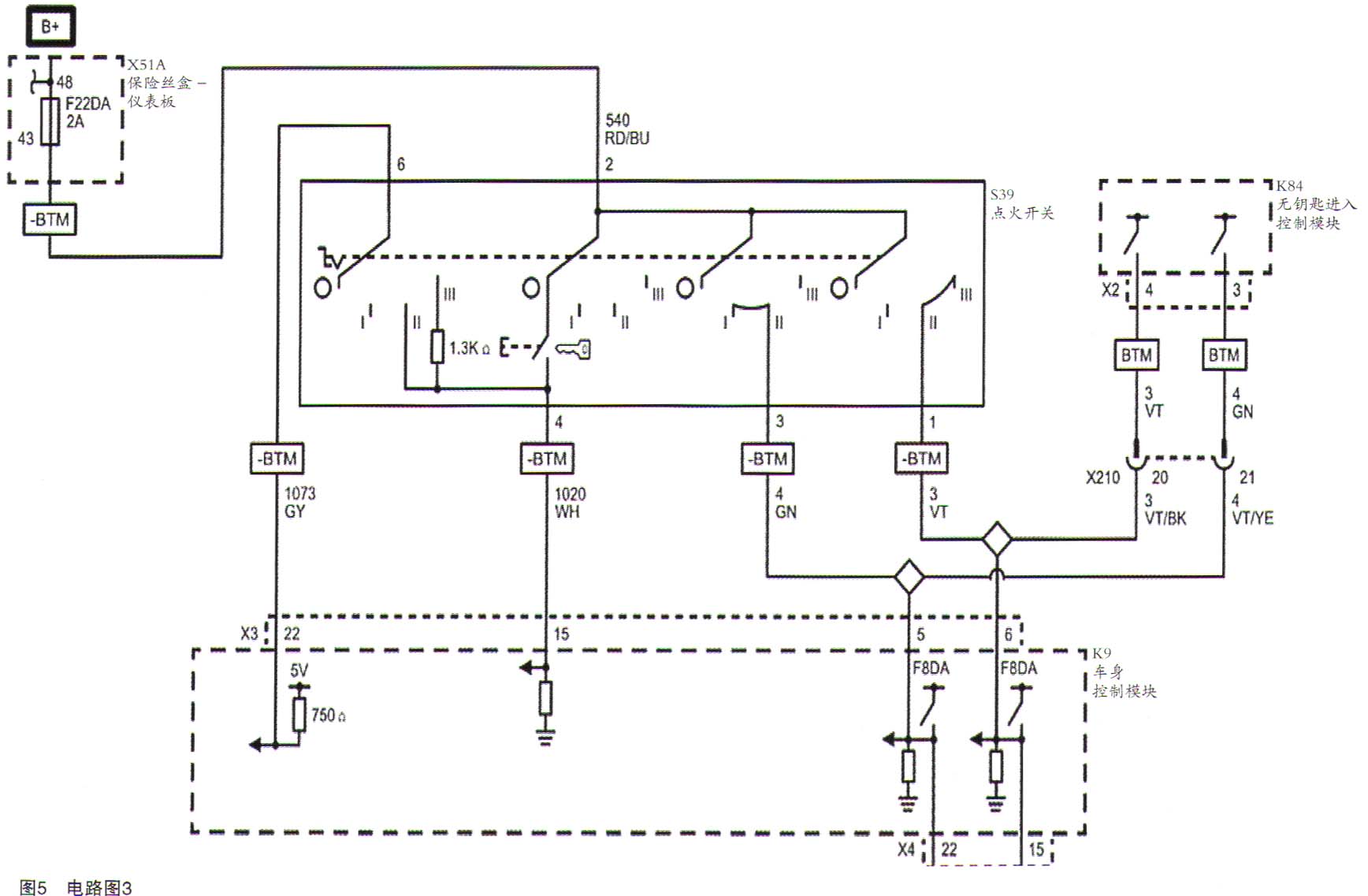 BCM通過喚醒線喚醒其他模塊。電路圖如圖5和圖6所示。