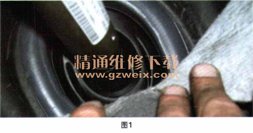 首先檢查前圍板上的密封圈是否安裝正確,接著檢查密封防塵套內(nèi)白色或藍(lán)色泡沫環(huán)的位置(圖1)。