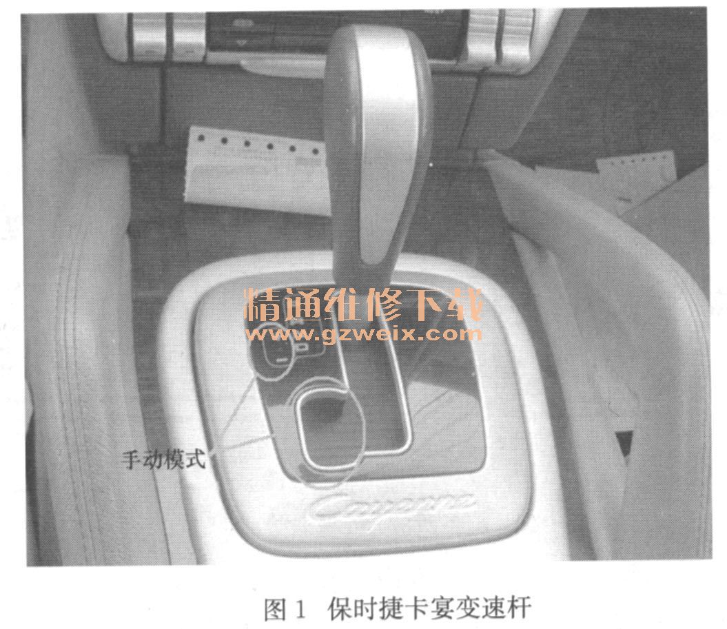 一輛行駛里程超20萬km,配用4. 8L V8發(fā)動機和日本愛信(AISIN)公司生產(chǎn)的TR-60SN型6速手/自動一體式電子控制自動變速器的2004年保時捷卡宴越野車。圖1為保時捷卡宴變速桿。