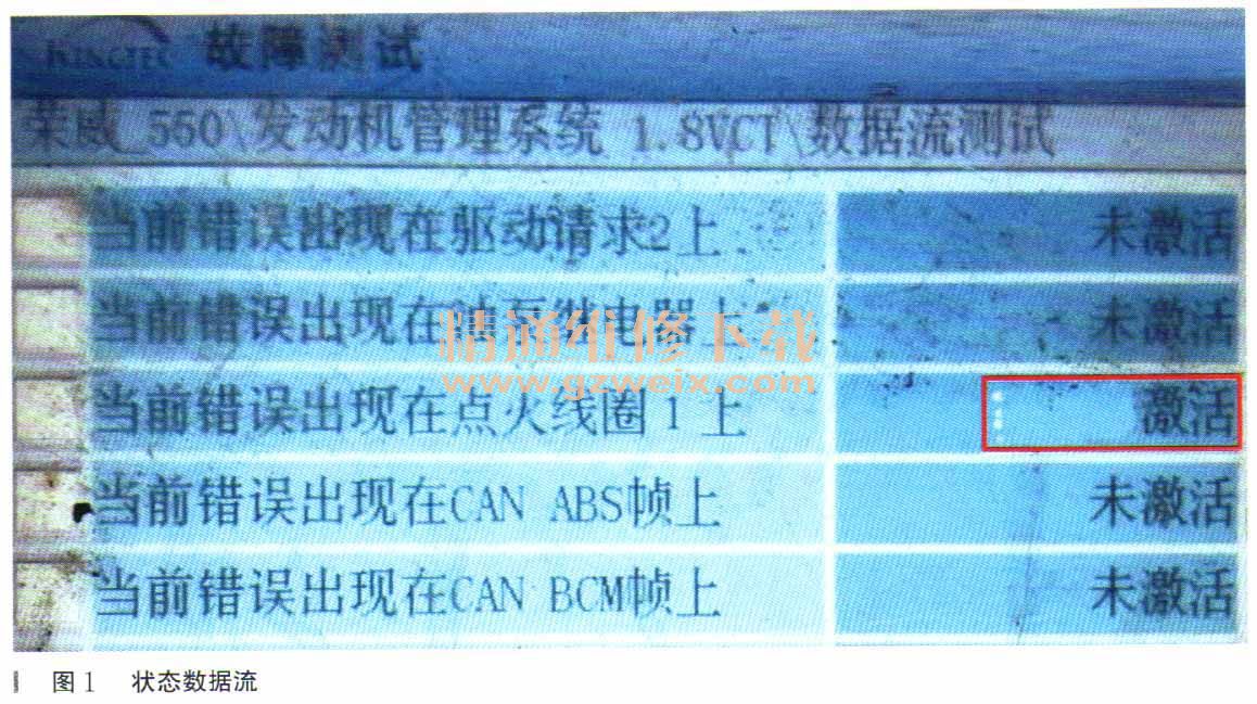 至此,故障似乎“鎖定”在進(jìn)氣凸輪軸上,根據(jù)“P0012進(jìn)氣凸輪軸位置延遲”,是不是要換進(jìn)氣凸輪軸驅(qū)動(dòng)電磁閥呢?為了弄清楚間題所在,我仔細(xì)的看了數(shù)據(jù)流,終于發(fā)現(xiàn)一個(gè)值得注意的點(diǎn)“當(dāng)前錯(cuò)誤出現(xiàn)在點(diǎn)火線圈1上”,狀態(tài)是“激活”(如圖1所示)!雖然想不到這與進(jìn)氣凸輪軸的關(guān)系,但是既然診斷儀報(bào)它有問(wèn)題:“激活”狀態(tài)表明診斷儀認(rèn)定它有問(wèn)題啊!于是用絕緣鉗分別鉗起2、4缸的高壓線(如圖2所示),只聽(tīng)高壓線與火花塞之間有“突,突,突”的火花跳動(dòng)聲以及隨著把高壓線提高與放低時(shí)有“噠,噠”的電磁閥動(dòng)作聲(提升最高使高壓線卡火花塞的筒不離開(kāi)氣門室蓋孔),再把第4缸的高壓線提升、放低幾次后,發(fā)動(dòng)機(jī)運(yùn)轉(zhuǎn)竟然似正常了!叫旁邊的師傅去看實(shí)際的轉(zhuǎn)速,發(fā)現(xiàn)竟然穩(wěn)定在850r/min左右。試車約4kim左右,沒(méi)有怠速不穩(wěn)的情況發(fā)生,再次進(jìn)入KT600診斷儀看發(fā)動(dòng)機(jī)數(shù)據(jù)流,竟然“當(dāng)前錯(cuò)誤出現(xiàn)在點(diǎn)火線圈1上”的狀態(tài)為“未激活”,如圖3所示。
