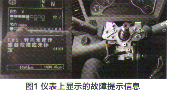 儀表顯示“轉向角度傳感器故障或未定”(圖1)。