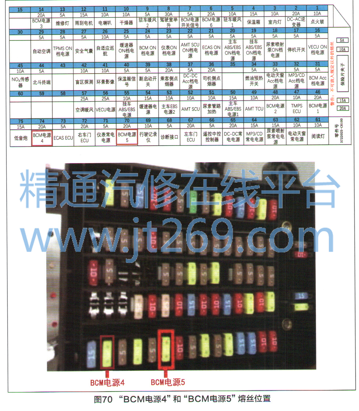 BCM電源4”熔絲(圖70)存在問題,可能會引發(fā)以下6個故障: