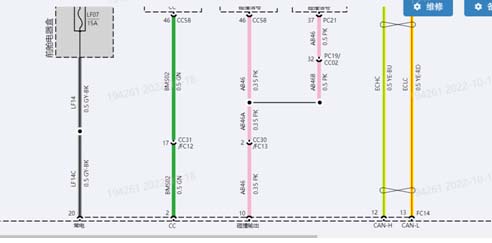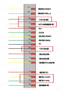 我們可以測(cè)得電池包低壓線路20號(hào)針腳正極和22針腳負(fù)極5號(hào)針腳喚醒及12和13針腳總線情況。