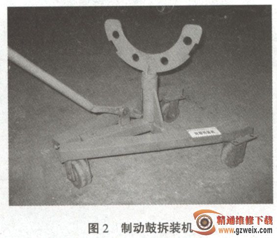 制動鼓拆裝機的設計目的是,僅需維修人員用很小的力就可以拆裝制動鼓,同時避免修理人員腰部受力。