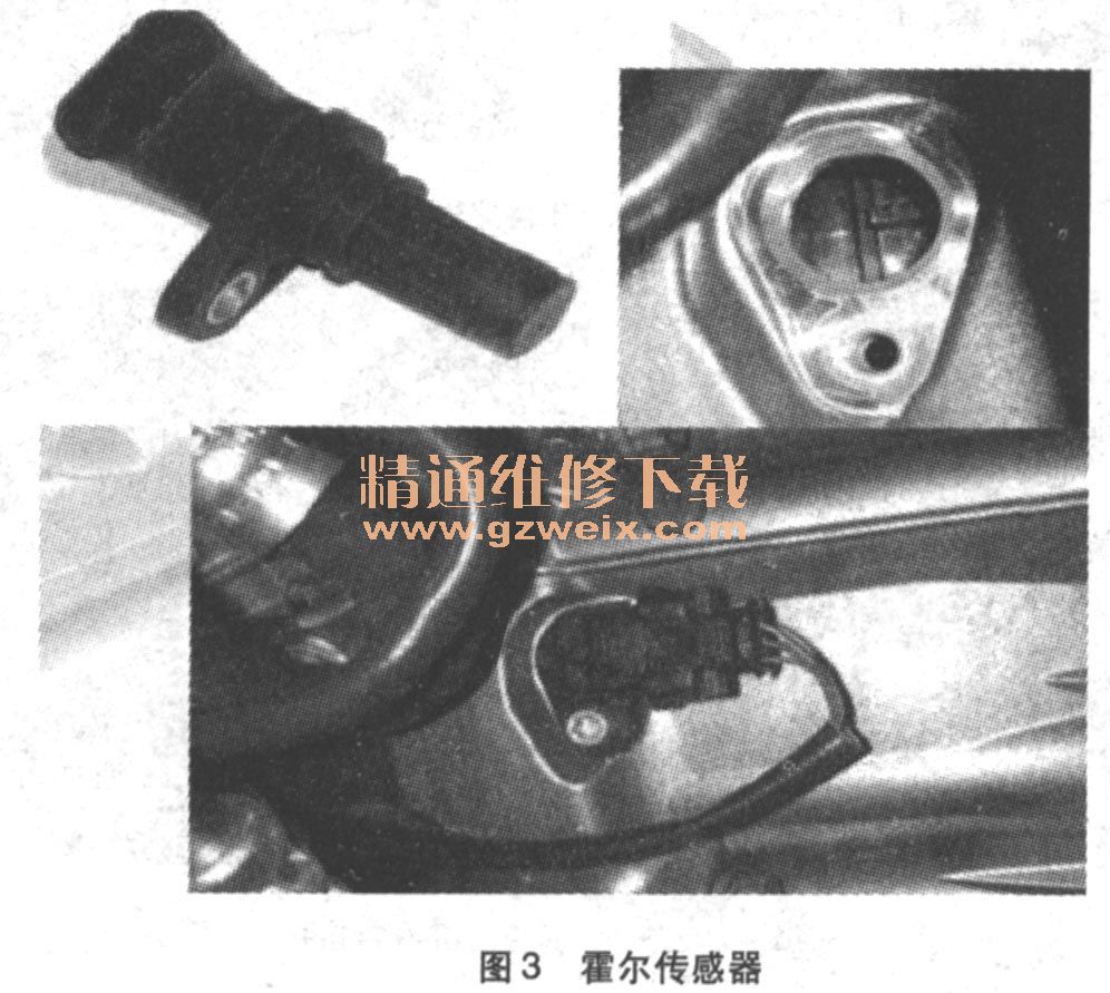 帕拉梅拉采用新型霍爾傳感器代替以前的電感傳感器來(lái)確定發(fā)動(dòng)機(jī)轉(zhuǎn)速。新型霍爾多重傳感器除了檢測(cè)發(fā)動(dòng)機(jī)轉(zhuǎn)速和參考標(biāo)記之外,還會(huì)檢測(cè)發(fā)動(dòng)機(jī)的旋轉(zhuǎn)方向。此功能意味著發(fā)動(dòng)機(jī)的啟動(dòng)操作非常迅捷。速度傳感器集成了3個(gè)霍爾傳感器(A-B-C)。曲軸上只需1個(gè)轉(zhuǎn)子(60-2輪齒)。即可產(chǎn)生相應(yīng)的脈寬調(diào)制信號(hào)。速度傳感器安裝在發(fā)動(dòng)機(jī)后面的左側(cè),位于變速器鐘形殼底部(從駕駛方向看)(如圖3所示)。