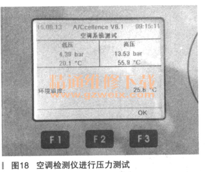 故障排除:最后確定為空調(diào)低壓管路有堵塞故障,更換管路部件后,試車故障排除。