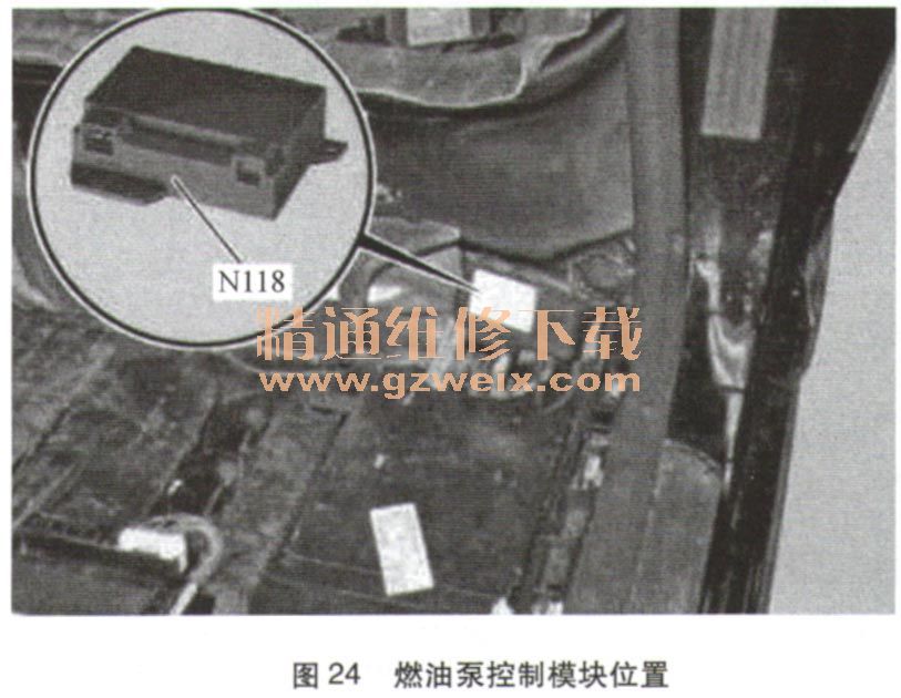 燃油泵控制模塊N118位于后排左側(cè),如24所示。