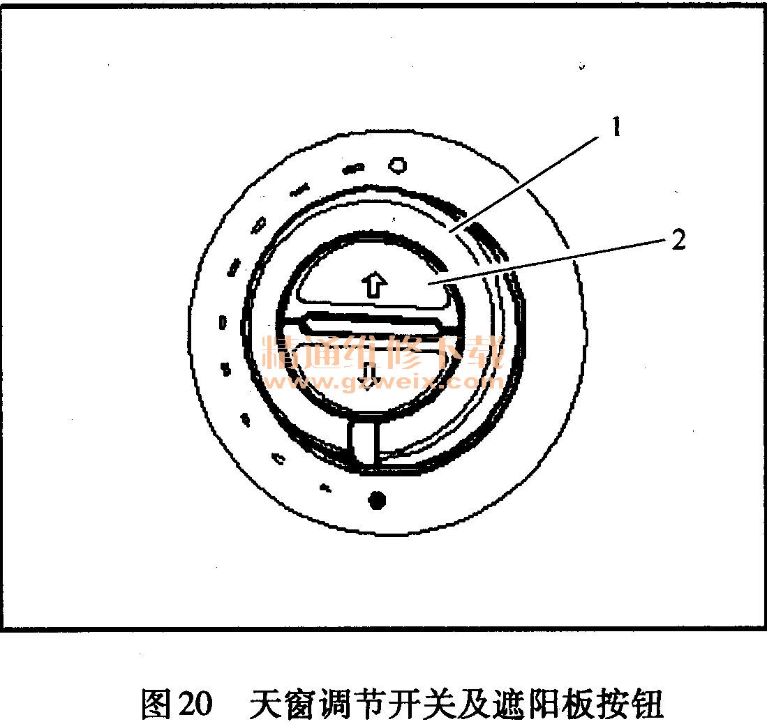3)將滑動(dòng)天窗調(diào)節(jié)開關(guān)1(圖20)往下按,并在整個(gè)初始化(約20s)過程中固定在該位置(即保持按下)。