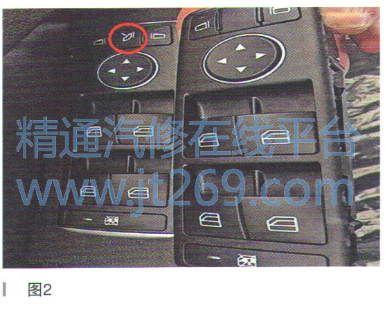 更換帶折疊的左前門升降器開關(guān)總成,如圖2所示。