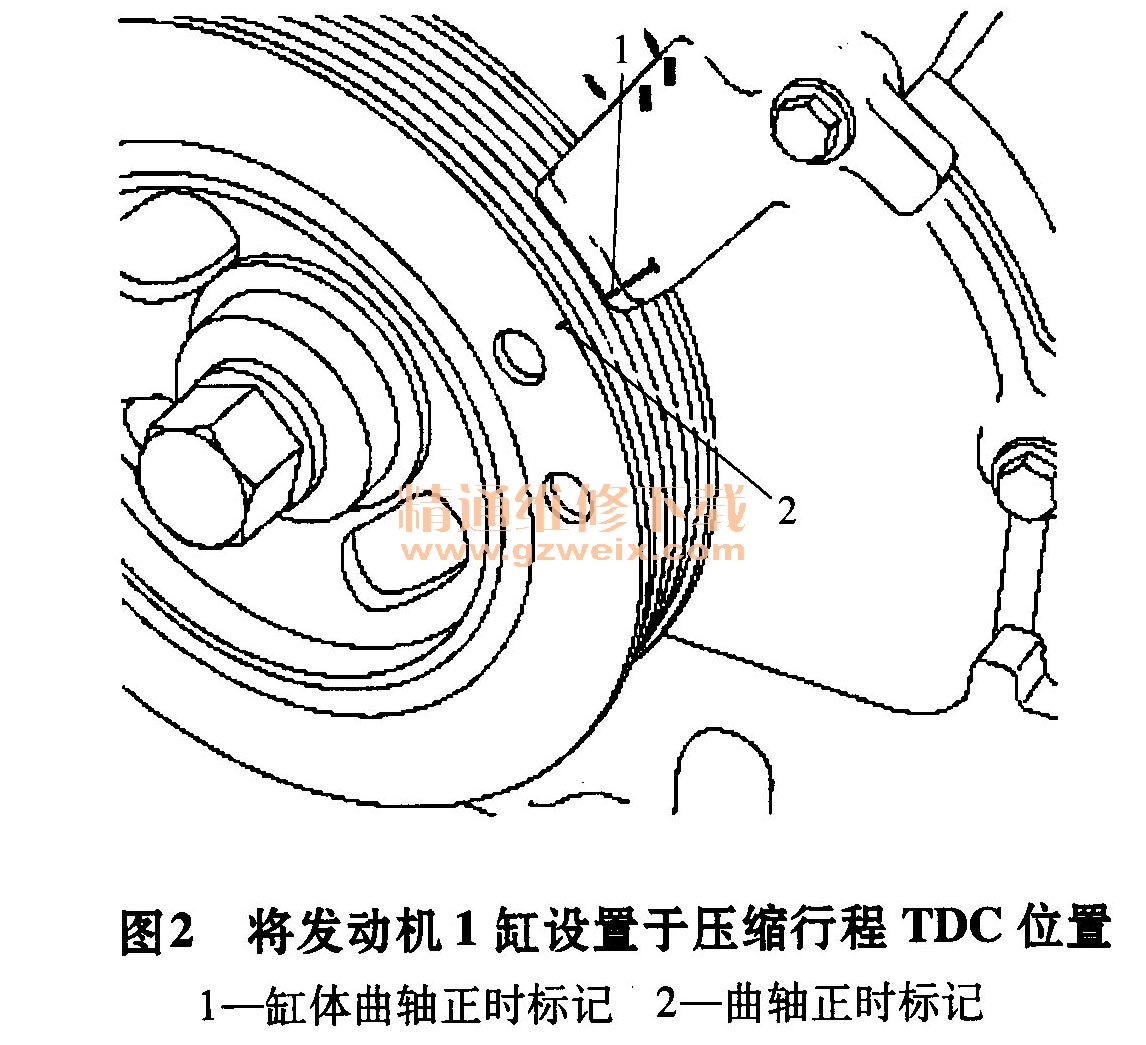 1)如圖2所示,將發(fā)動(dòng)機(jī)1缸設(shè)置到壓縮行程上止點(diǎn)(TDC)位置。